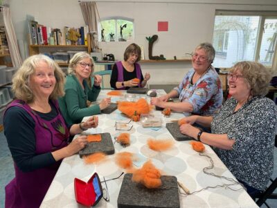 Elke vrijdagochtend inloop in mijn atelier van 10.00 uur tot 12.30 uur. Naaldvilten voor beginners en gevorderden. Korte of langere projecten mogelijk. Deelname kost 25 euro per keer inclusief basismateriaal zoals naalden, wol en ijzerdraad en iets te drinken. Een ’tienrittenkaart’ kost 225 euro. Het maximum aantal plaatsen is 6, dus graag van te voren bellen of appen.