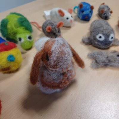In het schooljaar 2025 – 2026 is de workshop Wol Wil Wel naaldvilten voor basisscholen in de omgeving van Zutphen en Lochem gestart . Vraag deze workshop aan bij de Muzehof. Of neem voor scholen in Brummen contact op met de SWB. Overige gemeenten of aparte groepen kunnen direct met mij contact opnemen. De workshop is bedoeld voor leerlingen uit groepen 6 tot en met 8 en duurt 90 minuten. In het eerste kwartier kijken we een diaserie. Hierin worden de herkomst, waarde, eigenschappen en zowel praktische als kunstzinnige toepassingen van wol behandeld. Vervolgens geef ik wat uitleg over de techniek van het naaldvilten en oefenen we kort klassikaal in het werken met wol in 2D en 3D. Daarna is er tijd om een eigen werkstukje te maken, naar voorbeeld of naar eigen inzicht. Materiaal en gereedschap worden door de docent aangeleverd. Deze workshop is evengoed geschikt voor volwassenen. Het voorziet in een eerste kennismaking met naaldvilten.