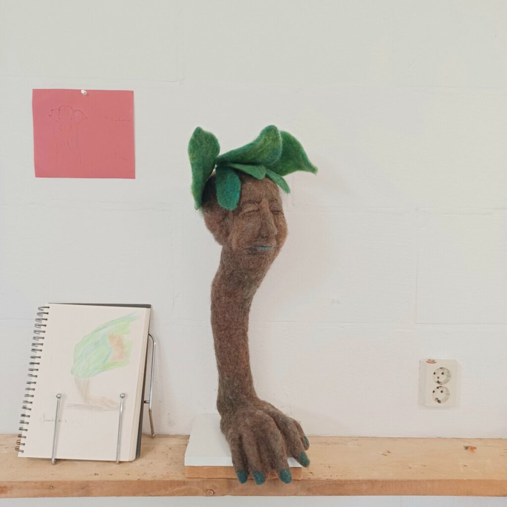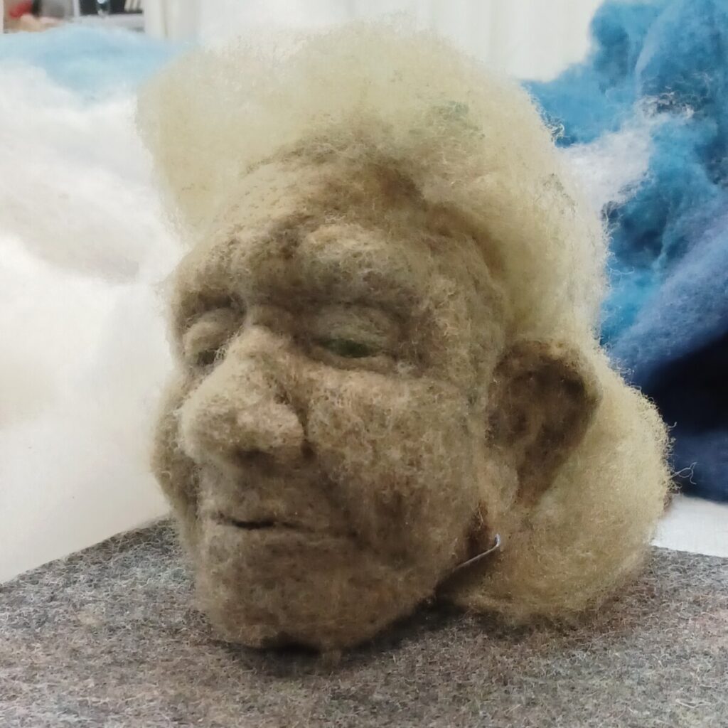 In 2022 onderzocht ik voor het eerst wol in het algemeen en naaldvilten in het bijzonder als alternatief voor brons. Wol heeft veel potentieel en beelden van vilt zijn in ieder opzicht milieuvriendelijker in de productie dan brons. Het maken van een beeld of pop is als boetseren met wol. Een van de verrassingen is dat het maken van een armatuur nagenoeg hetzelfde gaat als bij het maken van een beeld in boetseerwas. Een verschil: de vele kleuren waaruit ik kan kiezen. Ik heb veel geleerd van de tutorials van Sarafina Fiber Art. Deze kan ik iedereen aanraden. Vanaf april 2025 start ik om het materiaal wol en de techniek van het naaldvilten onder een breder publiek onder de aandacht te brengen op een speelse manier. Dit doe ik middels WolWilWel naaldvilt workshops in mijn atelier in de Hoven of op een door u gekozen locatie.
